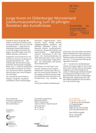 - Februar-Mai 2022 „Neue Werke“ in der Artothek vom Stadtmuseum Oldenburg.